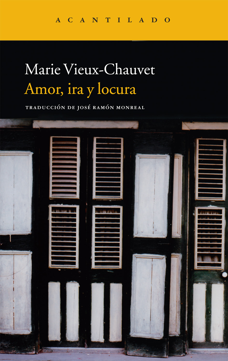 Amor, ira y locura de Marie Vieux-Chauvet es un conjunto de tres novelas breves, de enorme belleza e inusual capacidad evocativa. En la primera, Claire, de piel negra—motivo por el cual no ha podido casarse—, áspera, sensual y violenta, enamorada del marido de su hermana segunda, de piel blanca, intenta lanzarlo a los brazos de la menor, Annette, también blanca, procaz y agresiva. Claire, mientras tanto, se consume por las noches acariciando una muñeca y fantaseando con su cuñado o, incluso a su pesar, con el comandante Calédu, representante brutal del poder corrupto en el pueblo en el que viven y que, entre otras cosas, ha violado a una de sus amigas. Por el libro desfilan los chismes, maldades y vulgaridades de un pueblo en el que todo el mundo espía a todo el mundo. Ira se desarrolla en un barrio elegante de Puerto Príncipe. En ella veremos cómo los militares se adueñan de las tierras de una familia respetable que ha debido renunciar a ellas por la fuerza, y la posterior caída de la familia entera en la abyección. En Locura, un poeta mulato se debate entre el aburrimiento y la rebelión, Cristo y los ritos vudús. La calle es un infierno en el que señorean los diables con cascos dorados y botas rojas. Un día, espoleado por la muerte de un amigo y los efectos del clairin y del hambre, intenta atacarlos con unos rudimentarios cócteles molotov. Tras la explosión patética de uno de ellos, es arrestado y condenado a muerte, hecho que él afronta con la certeza de que su vida ha sido plena.