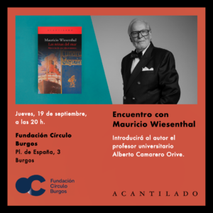El jueves, 19 de septiembre, el escritor Mauricio Wiesenthal charlará con sus lectores en la Fundación Círculo Burgos a las 20 h. El profesor universitario Alberto Camarero Orive presentará al autor.