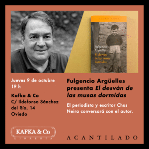 El escritor Fulgencio Argüelles presentará El desván de las musas dormidas el jueves 9 de octubre en la librería Kafka & Co a las 19 h. El periodista y escritor Chus Neira conversará con el autor.