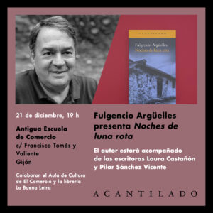 El escritor Fulgencio Argüelles presentará la novela Noches de luna rota el miércoles 21 de diciembre en la Antigua Escuela de Comercio de Gijón a las 19 h.