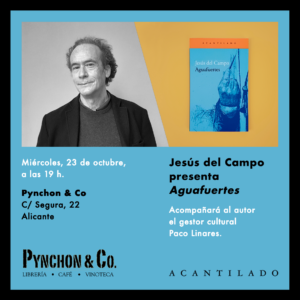 El miércoles 23 de octubre a las 19 h, el escritor Jesús del Campo presentará su nueva obra Aguafuertes en la librería Pynchon & Co. Acompañará al autor el gestor cultural Paco Linares.