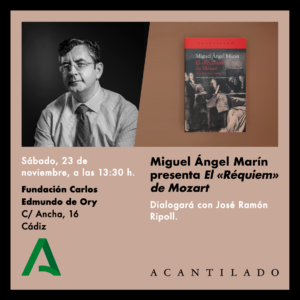 Miguel Ángel Marín presentará su último libro, El «Réquiem» de Mozart, el próximo sábado 23 de noviembre a las 13:30 h. El evento será en la Fundación Carlos Edmundo de Ory. El autor dialogará con José Ramón Ripoll.