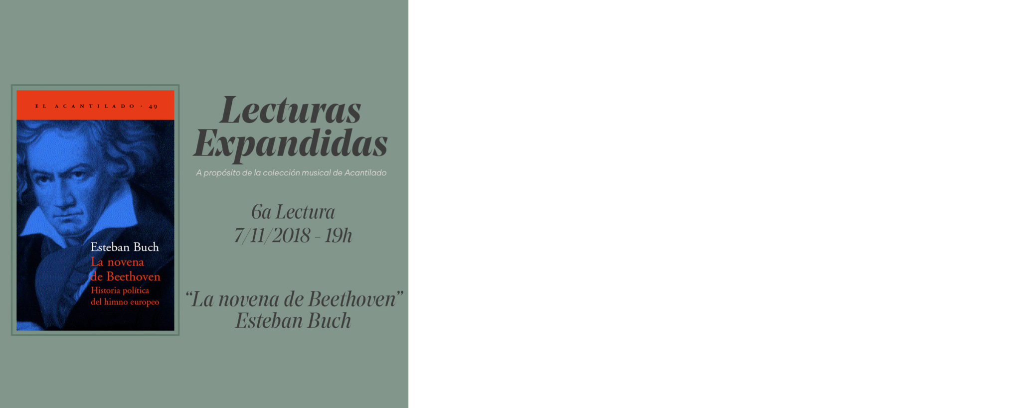 La obra La novena de Beethoven de Esteban Buch protagonizará el sexto ciclo de conferencias de Lecturas expandidas sobre nuestro catálogo musical, de la mano del doctor Carlos Calderón, el próximo miércoles 7 de noviembre a las 19:00 horas, dentro del bloque “Los Creadores” en el Hotel Alma Barcelona.