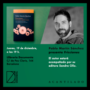 Pablo Martín Sánchez presentará Fricciones el jueves 19 de diciembre a las 19 h en la librería Documenta. La editora Sandra Ollo conversará con el autor.