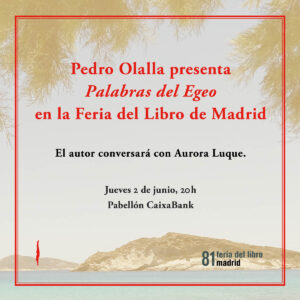 El próximo jueves 2 de junio el escritor Pedro Olalla presentará su último ensayo, Palabras del Egeo, en la Feria del Libro de Madrid. El autor conversará con Aurora Luque en el pabellón CaixaBank a las 20 h.