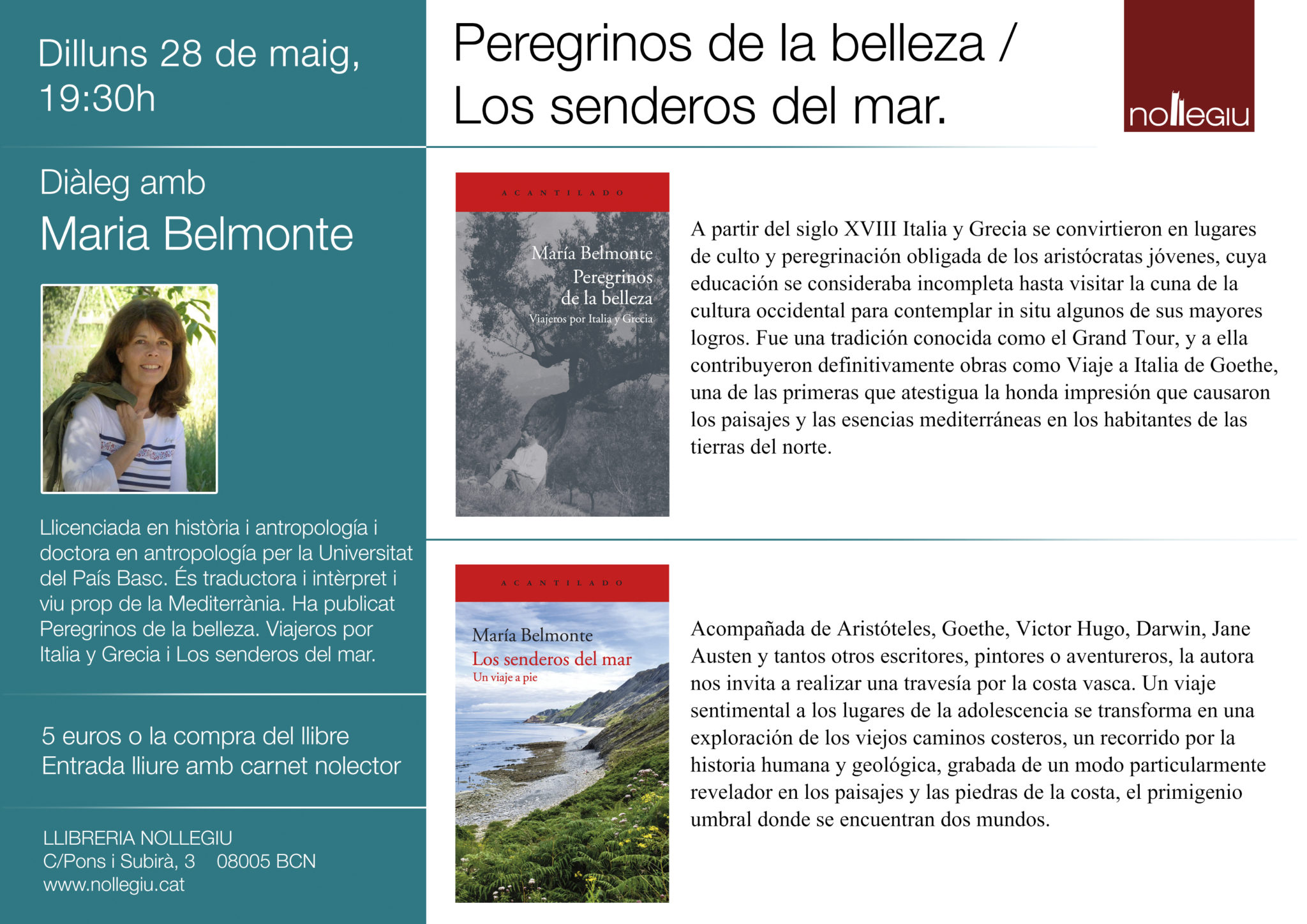 María Belmonte, autora de Peregrinos de la belleza presentará su último libro, Los senderos del mar, en la librería barcelonesa NoLlegiu.