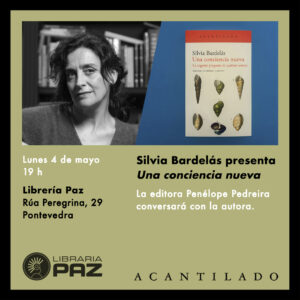 El lunes 4 de mayo a las 19 h la escritora Silvia Bardelás presentará el ensayo Una conciencia nueva. La urgente pregunta de quiénes somos en la Librería Paz. La editora Penélope Pedreira conversará con la autora.