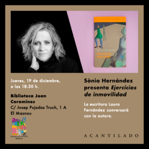 Sònia Hernández presentará su último libro, Ejercicios de inmovilidad, el próximo jueves 19 de diciembre a las 18:30 h. El evento será en la Biblioteca Joan Coromines. La autora conversará con la escritora Laura Fernández.